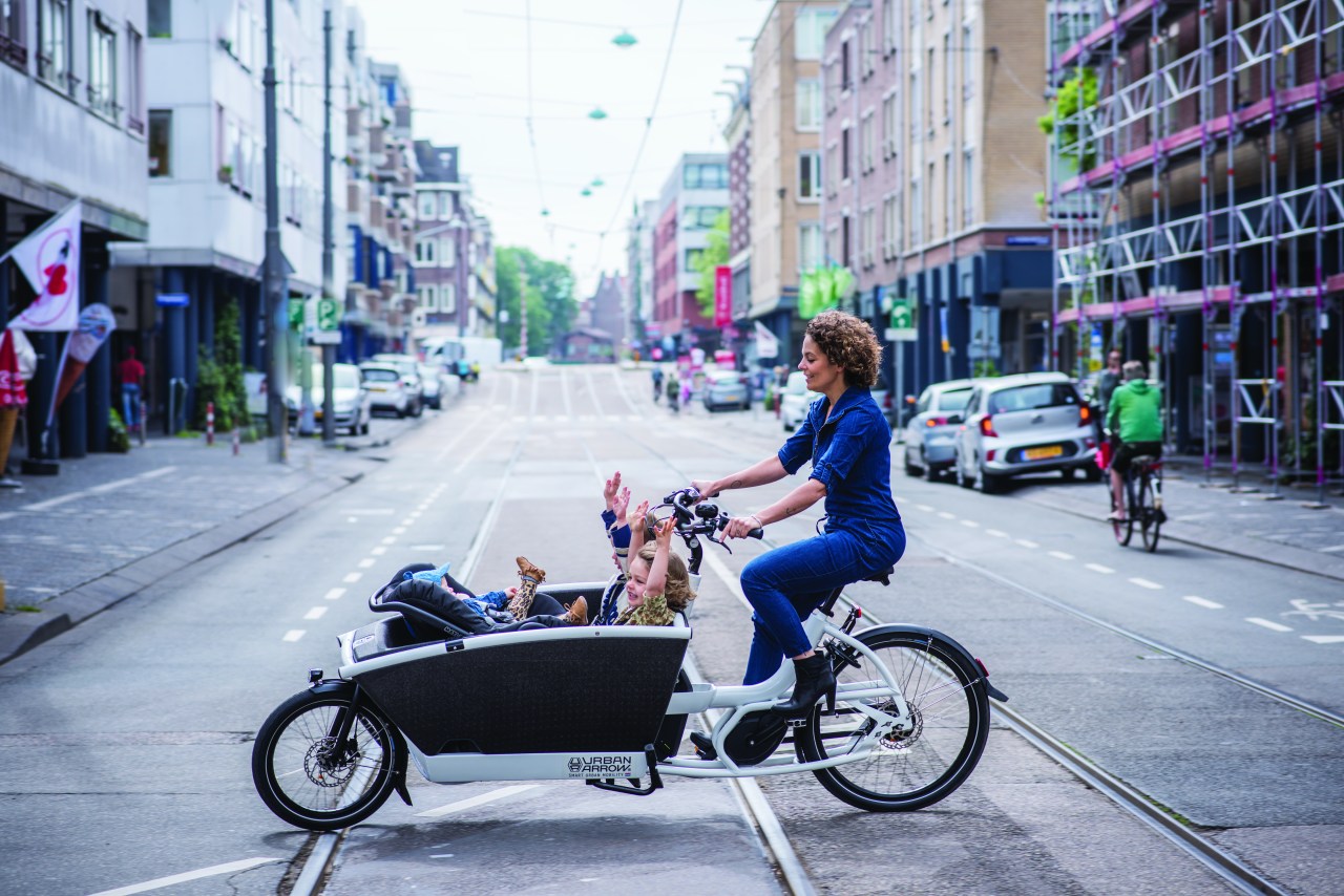 De Urban Arrow is een robuuste elektrisch aangedreven bakfiets waarmee je met het grootste gemak 3 tot 4 kinderen droog en vooral veilig mee kan vervoeren.